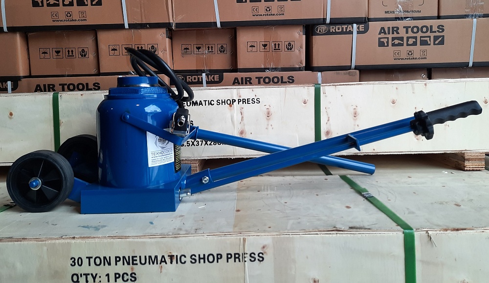Пневмогидравлический привод подъема домкрата, позволяет быстро и без усилий вывесить автомобиль. В том числе и с грузом, что очень удобно при ремонте колес на трассе.