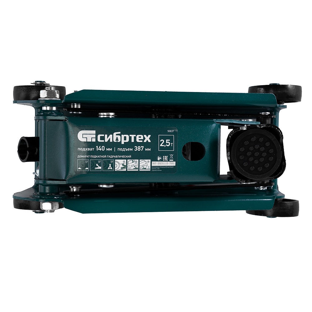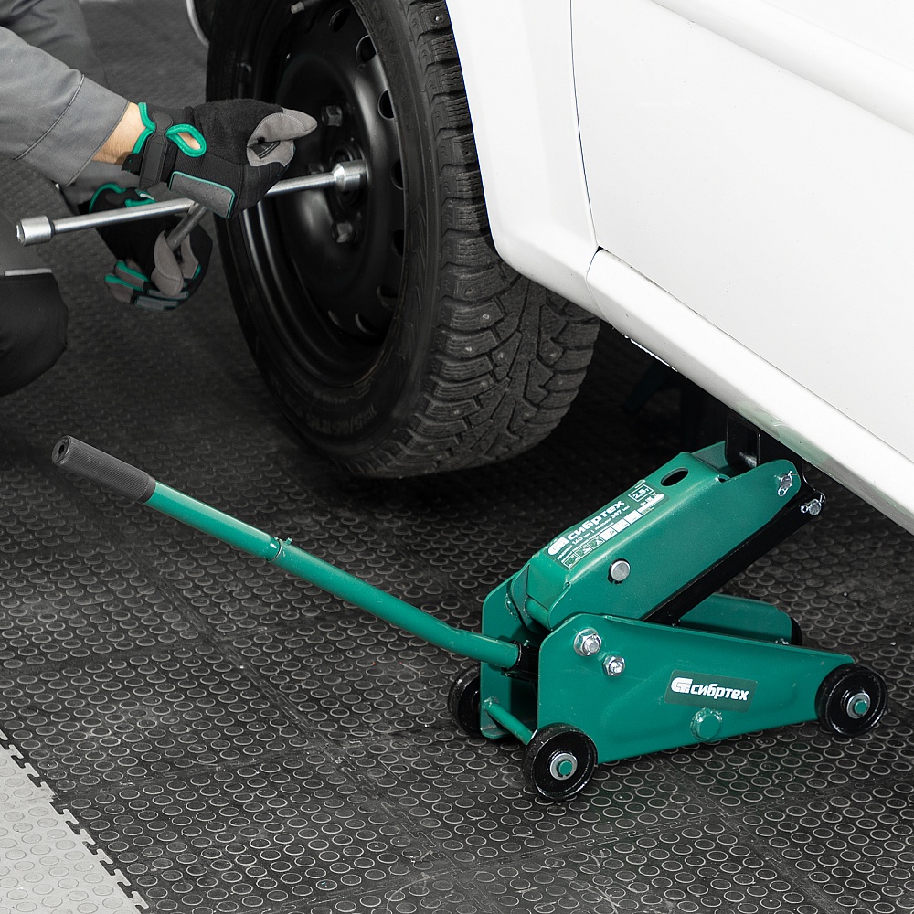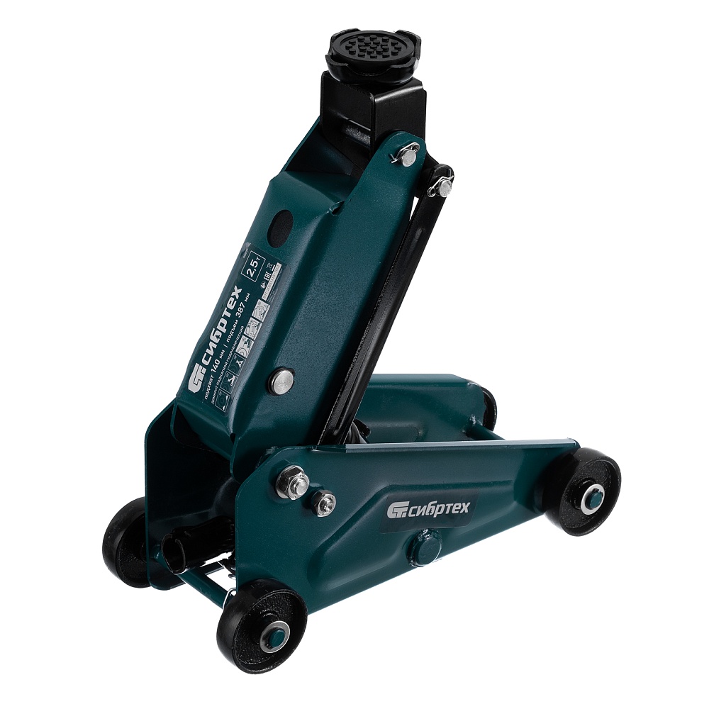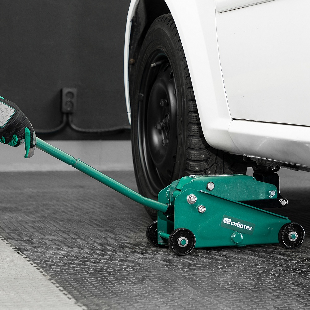Гидравлический подкатной домкрат Сибртех 50837, поставляющийся в пластиковом кейсе, с высотой подхвата 148 мм, предназначен для подъема грузов массой до 2,5 т на высоту до 387 мм. Применяется для обслуживания автомобилей со стандартным клиренсом. Компактный домкрат подходит для самостоятельного использования автовладельцами.
