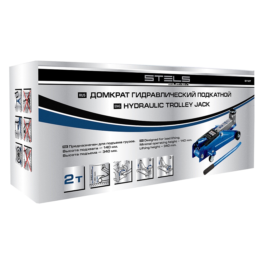 Гидравлический подкатной домкрат Stels 51127 с высотой подхвата 140 предназначен для подъема грузов массой до 2 т на высоту до 340 мм. Применяется для обслуживания автотранспорта, подходит для автомобилей со стандартным клиренсом. Домкрат компактен и может использоваться автовладельцами самостоятельно.
