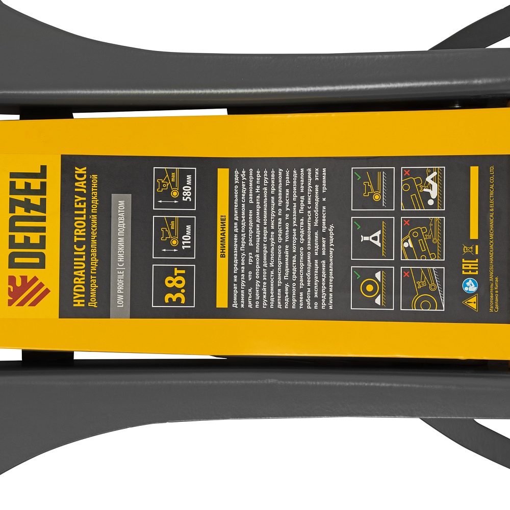 Домкрат гидравлический подкатной, 3,8 т, 110-580 мм, быстрый подъем, низкий подхват, проф. Denzel