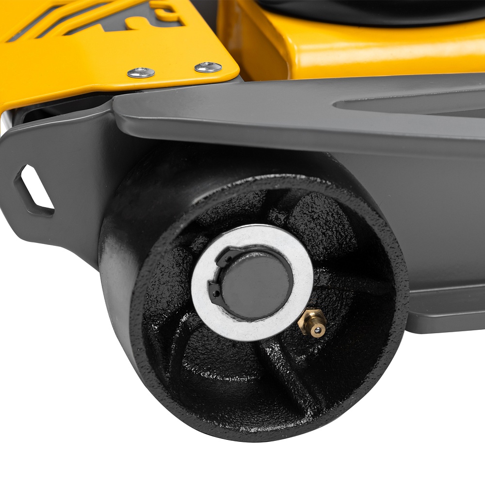 - Внимание к деталям — передние колеса домкрата имеют масленки для смазки подшипников, такое решение исключает возможность заклинивания механизма во время интенсивной работы.