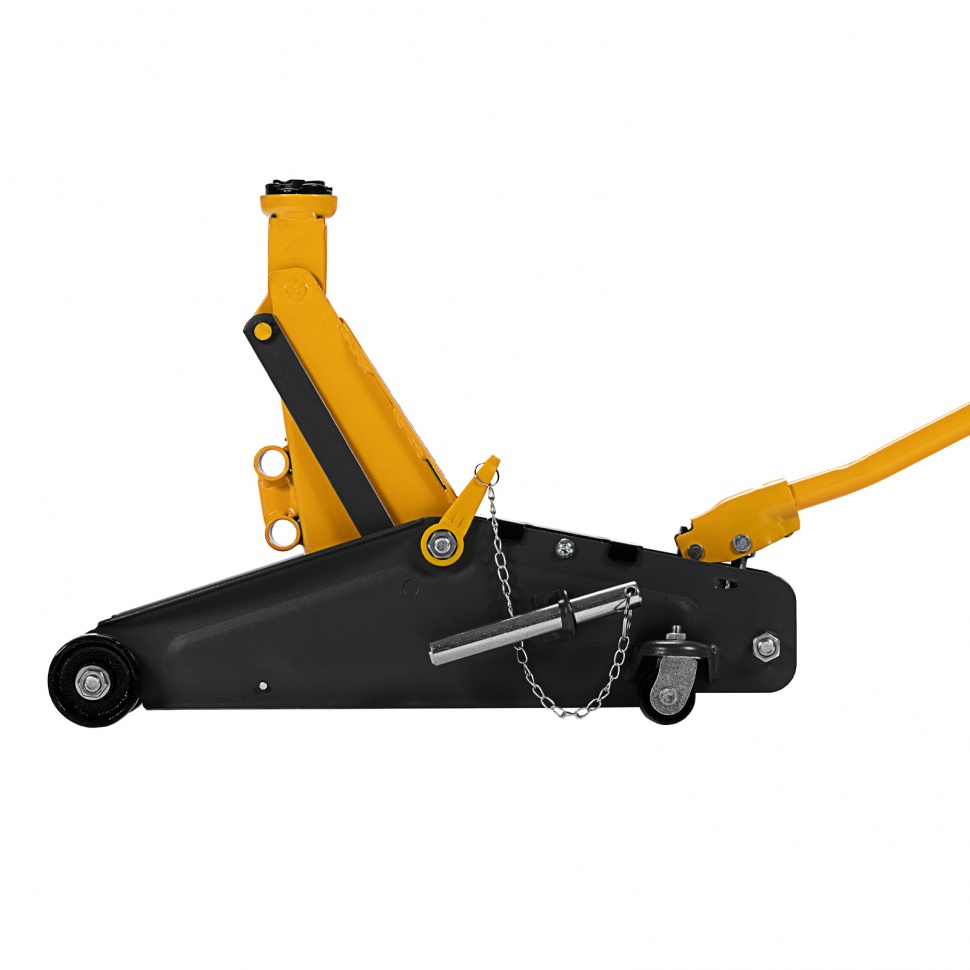 Гидравлический подкатной домкрат с фиксатором Denzel 51156, с высотой подхвата 135 мм, предназначен для плавного подъема грузов массой до 2,8 т на высоту до 385 мм. Страховочный штифт позволяет фиксировать подъемный рычаг на высоте 305 и 370 мм для безопасной работы. Домкрат пригодится владельцам легковых автомобилей со стандартным клиренсом.
