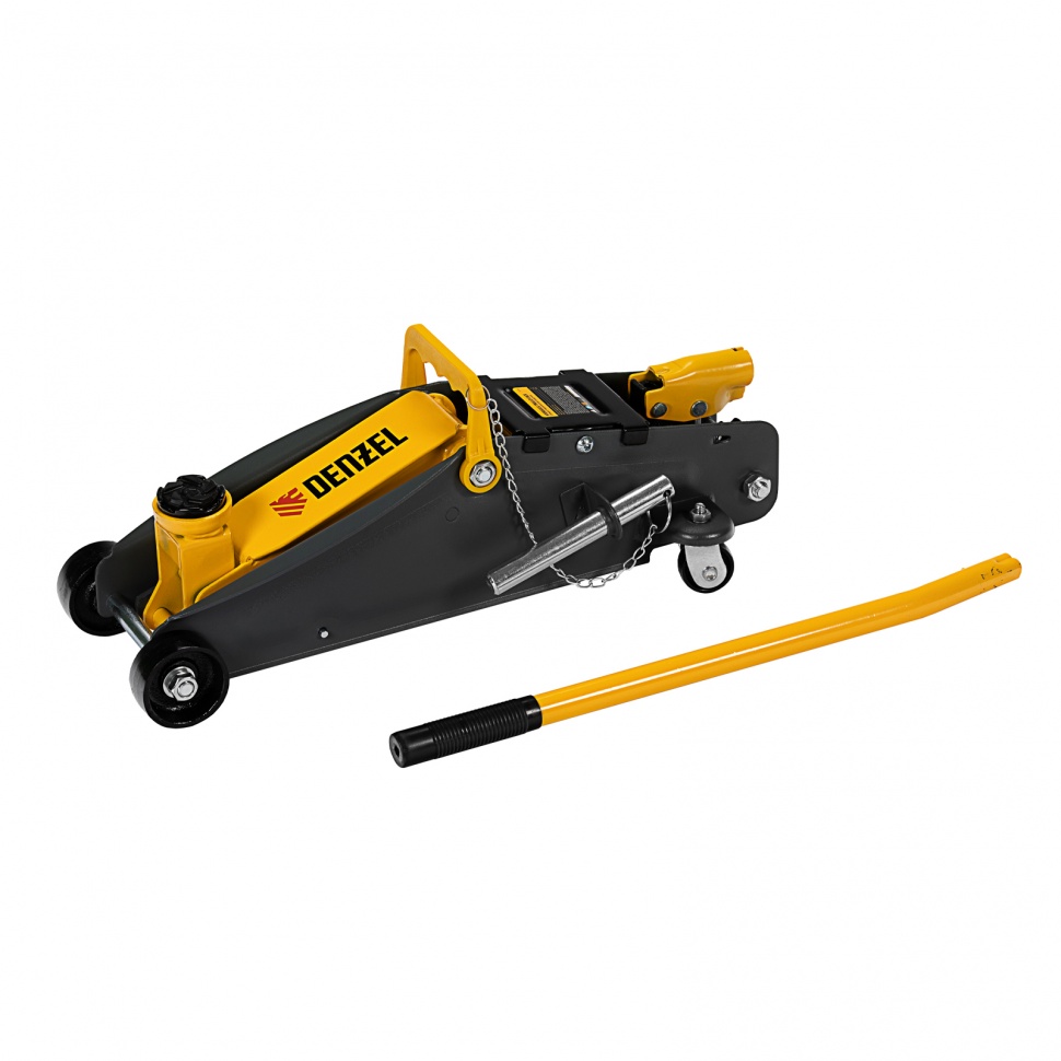 Домкрат гидравлический подкатной с фиксатором, 2,8 т, 135-385 мм, в кейсе Denzel