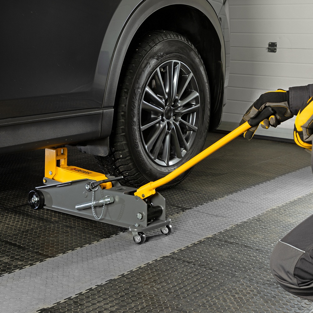 Домкрат гидравлический подкатной с фиксатором, 3 т, 190-532 мм, SUV/ Denzel