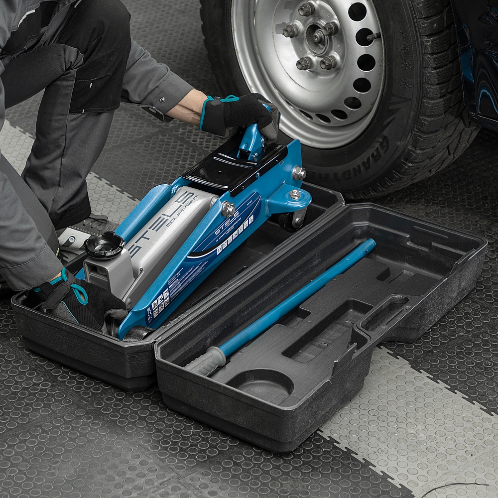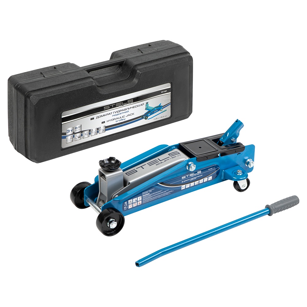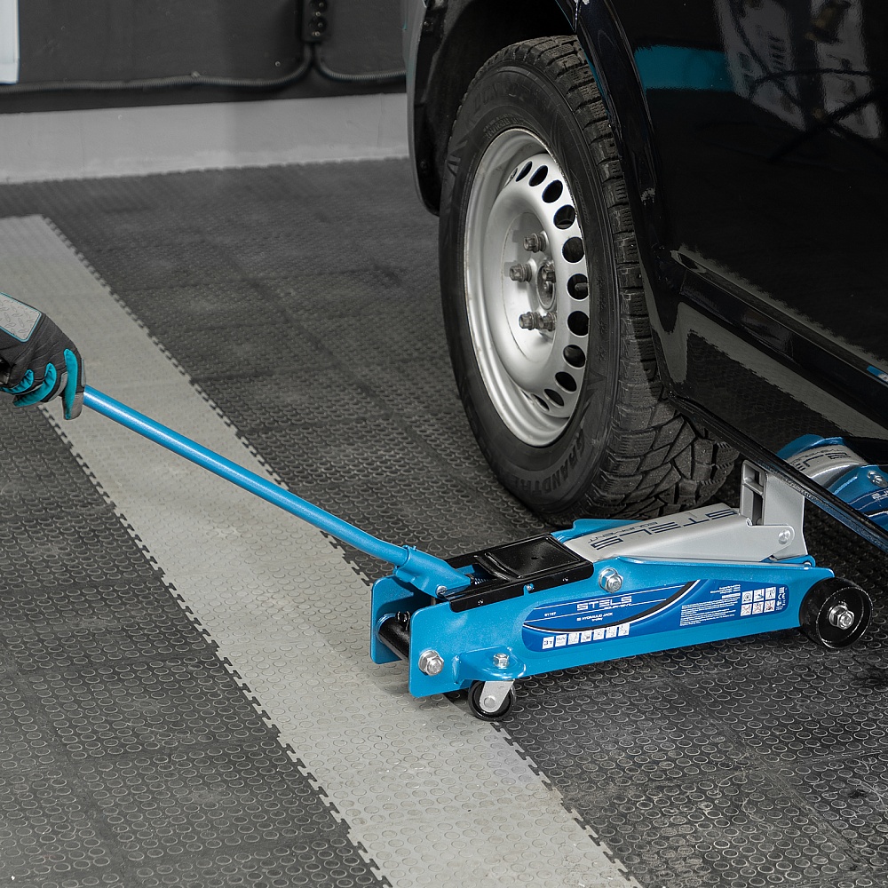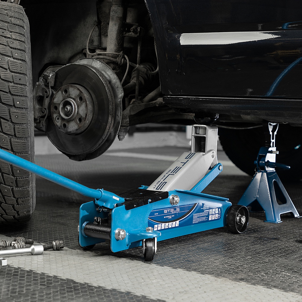 Подкатной гидравлический домкрат Stels 51157 с высоким подъемом 190 мм позволяет поднимать грузы весом до 3 т на высоту 535 мм и подходит для автомобилей класса SUV с увеличенным дорожным просветом. Может использоваться для самостоятельного обслуживания авто.