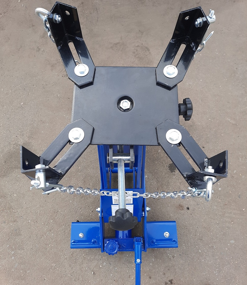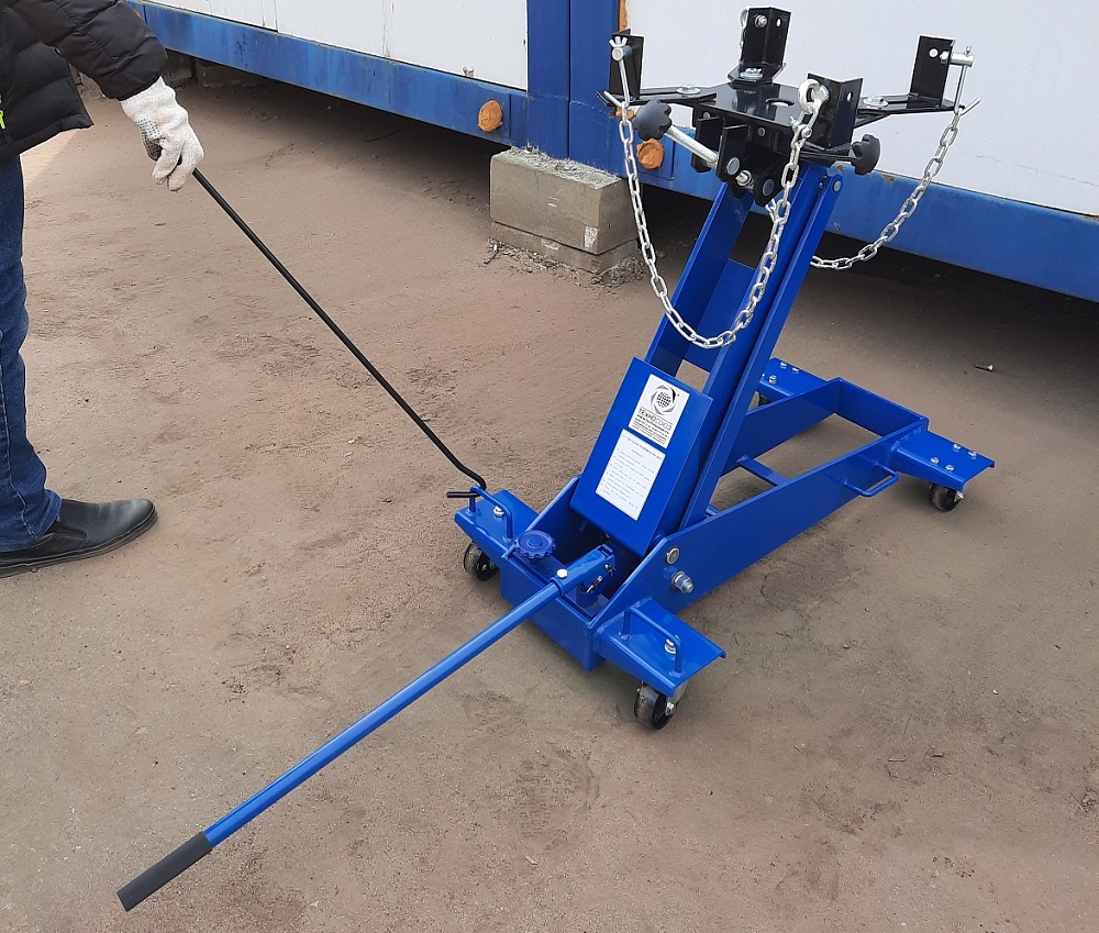 Домкрат трансмиссионный для снятия/установки ОСОБО ТЯЖЕЛЫХ АГРЕГАТОВ (КПП, мостов и т.п.) г/п 1 т. Подъем 230-760 мм. Устойчивый и маневренный – два колеса поворотные. Оборудован страховочной цепью, для фиксации агрегата. Приемная площадка регулируется с фиксацией в трех плоскостях: продольно, по наклону, по оси вращения.