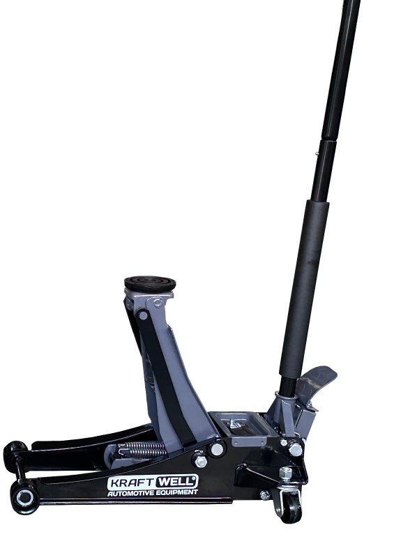 KRWFJ3FL KraftWell Домкрат подкатной гидравлический, низкопрофильный с педалью г/п 3000 кг. Двухпоршневой насос, карданный привод опускания.