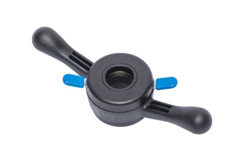 Гайка оснащена двумя большими резьбовыми сегментами для надёжной фиксации колеса.