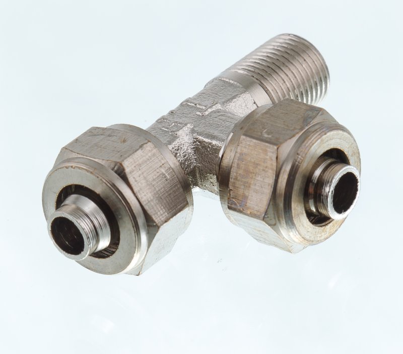 Фитинг (тройник). Применяется для соединения пневмолинии в поворотном распределителе. Размер: 1/8" Диаметр шланга: 8мм.