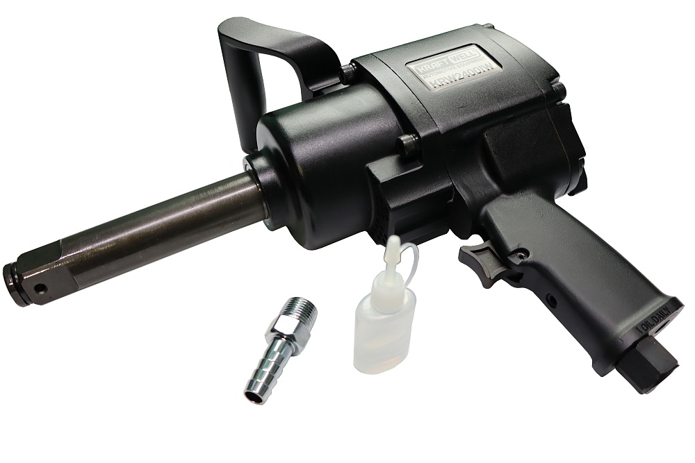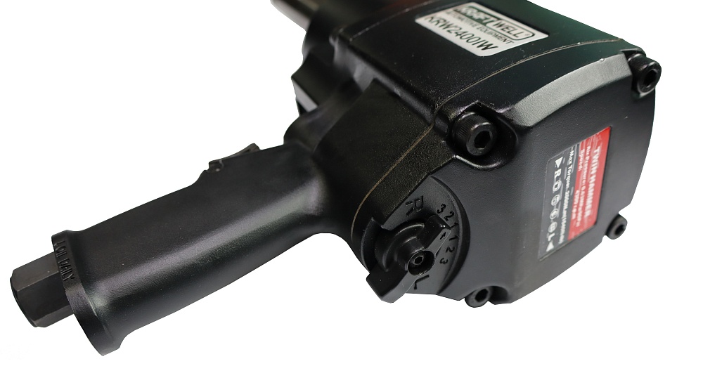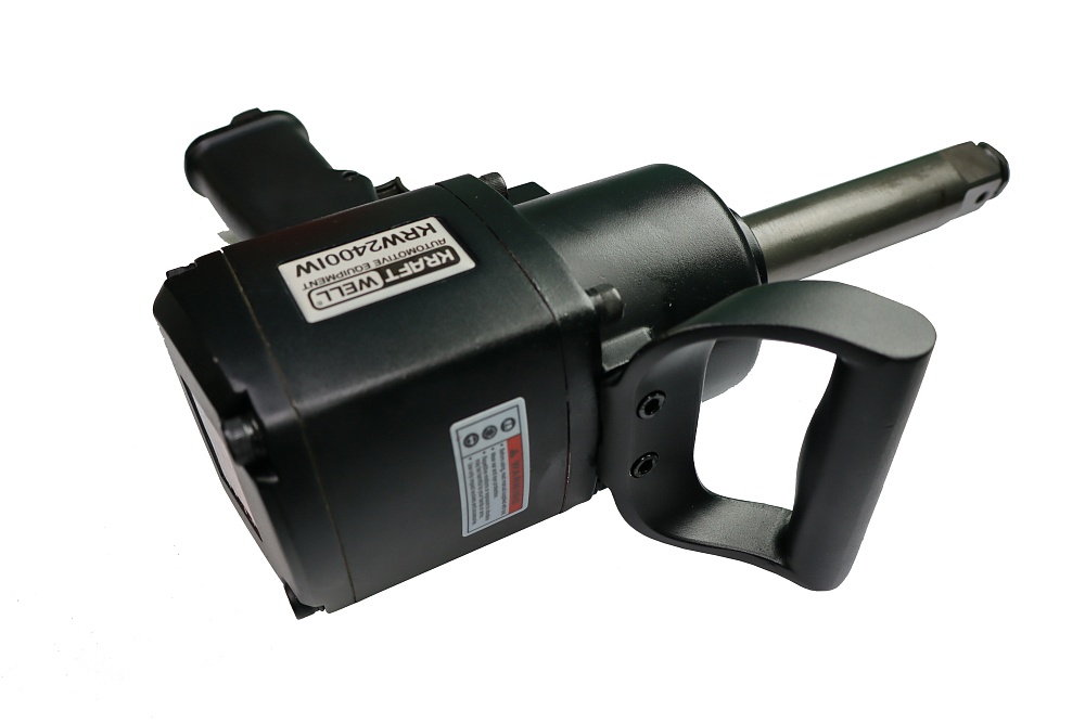 Пневматический гайковерт KRAFTWELL, модель KRW2400IW с ударным механизмом “TWIN HAMMER” и системой смазки под давлением развивает крутящий момент 1800 Нм. Размер посадочного квадрата составляет 3/4”, что позволяет работать с ударными головками до 33 мм. Воздушный мотор оснащен качественными подшипниками, торцевыми пластинами из кованной стали и тщательно обработанными компонентами для обеспечения плавной работы и максимальной мощности. Корпус гайковерта выполнен из высококачественной прочной стали и рассчитан на длительный период эксплуатации.