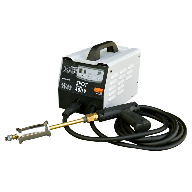Аппарат контактной точечной сварки с цифровым управлением на основе микропроцессора. Аппарат позволяет выполнить различные виды кузовных работ по выравниванию металлических поверхностей. Многофункциональная цифровая панель обеспечивает возможность выбора инструмента и регулировку мощности (11 уровней). В комплекте сварочный пистолет, обратный молоток и сварочный набор. Аппарат поставляется с зажимом массы, пистолетом с кабелем и разъемом на ¼ оборота, коробкой с аксессуарами и расходниками и кабелем питания типа H07RNF.