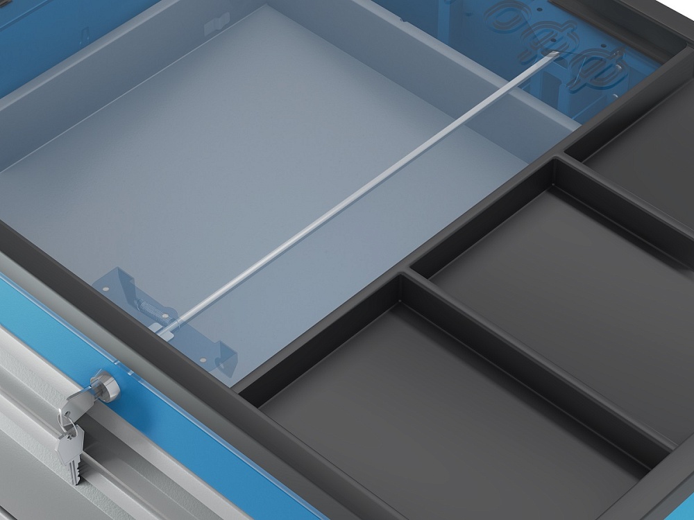 корпус - RAL5015, ящики - RAL7037, ручки ящиков - RAL9006