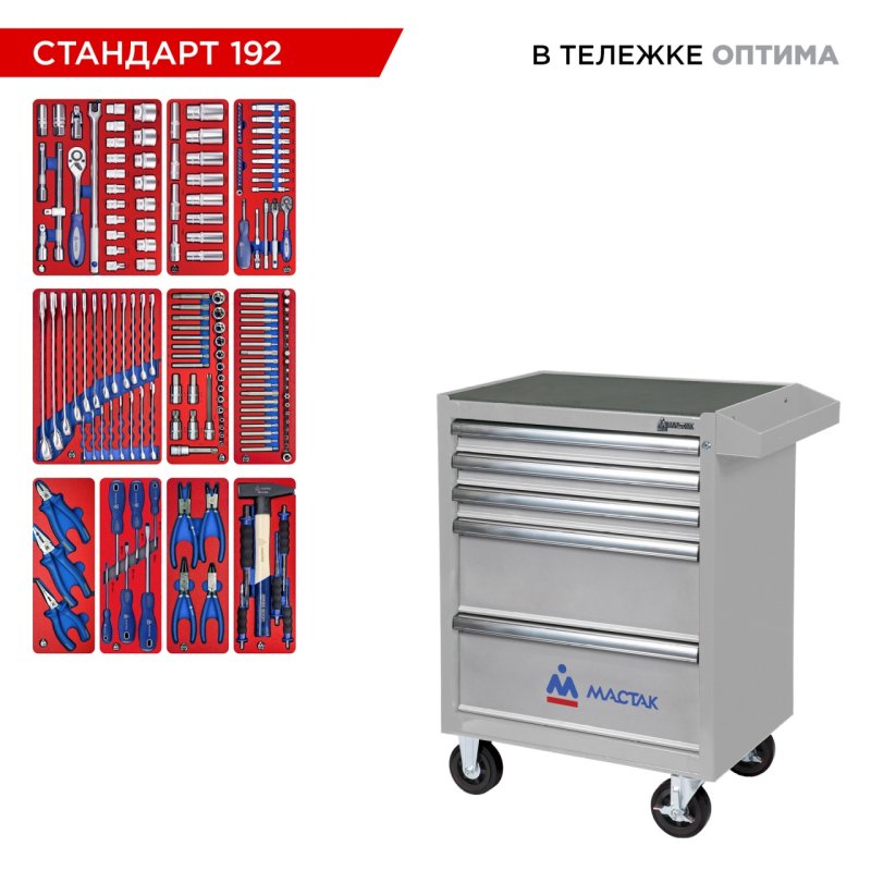 Набор инструментов 192 предмета, "СТАНДАРТ 192", в серой тележке МАСТАК 52-05192G купить в СПб цена ✅ - Все для СТО