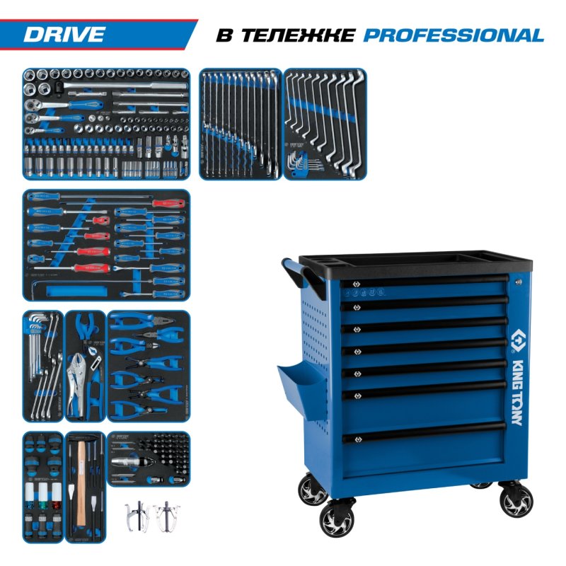 Набор инструментов 251 предмет, "DRIVE", в синей тележке KING TONY 9G38-251MRVB купить в СПб цена ✅ - Все для СТО