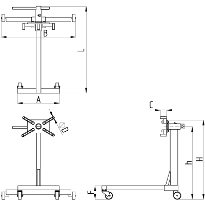 Стенд предназначен для вывешивания двигателя при проведении работ по его диагностике и ремонту, а также для транспортировки внутри помещения.