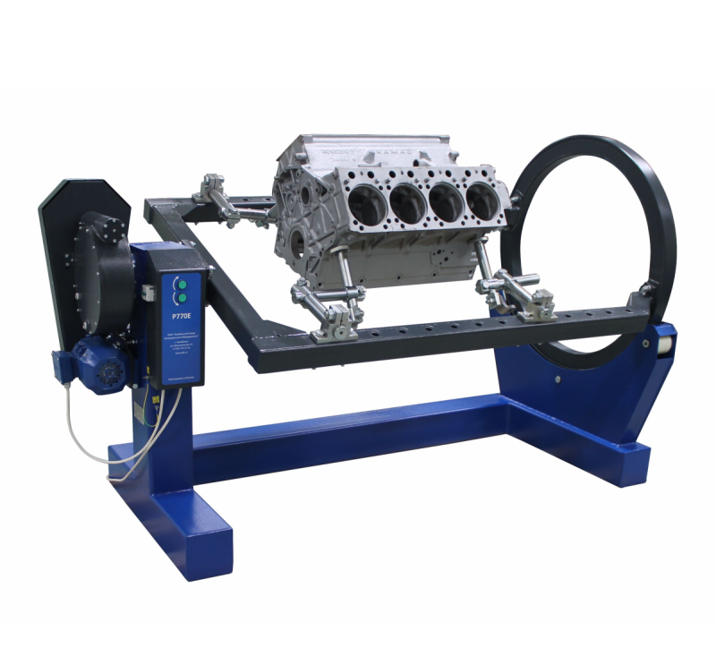 Стенд-кантователь для разборки и сборки двигателей г/п до 3000 кг. Привод электромеханический. Предназначен для разборки-сборки V-образных двигателей ЯМЗ-236, -238, КАМАЗ-740, -741, -7403.10, 740.11-240 и других двигателей, КПП, задних мостов и различных агрегатов отечественного и импортного производства. Благодаря универсальным креплениям, входящим в состав данного изделия, стенд Р770Е подходит для ремонта двигателей и КПП семейства КАМАЗ, ЯМЗ, ЗИЛ, ГАЗ, УРАЛ и других автопроизводителей.