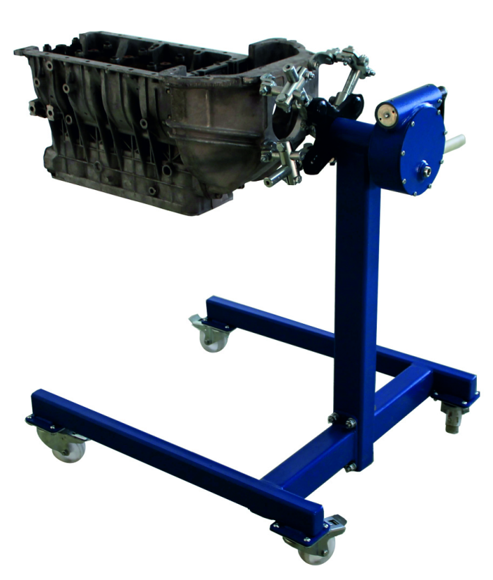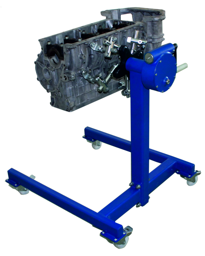 Самотормозящийся червячный редуктор позволяет повернуть и зафиксировать закрепленный на стенде двигатель или другой узел так, чтобы было удобно и качественно производить ремонтные работы.