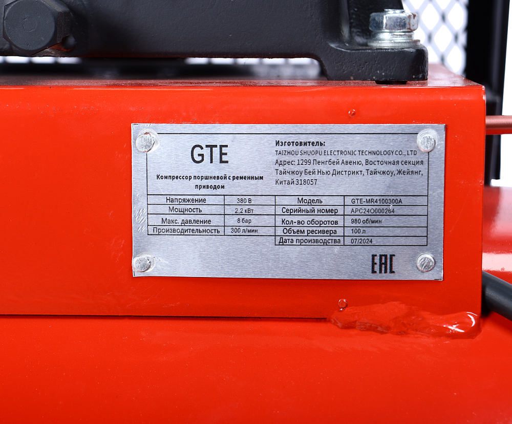 GTE-MR4100300A Компрессор поршневой с ременным приводом 380В купить в СПб цена ✅ - Все для СТО