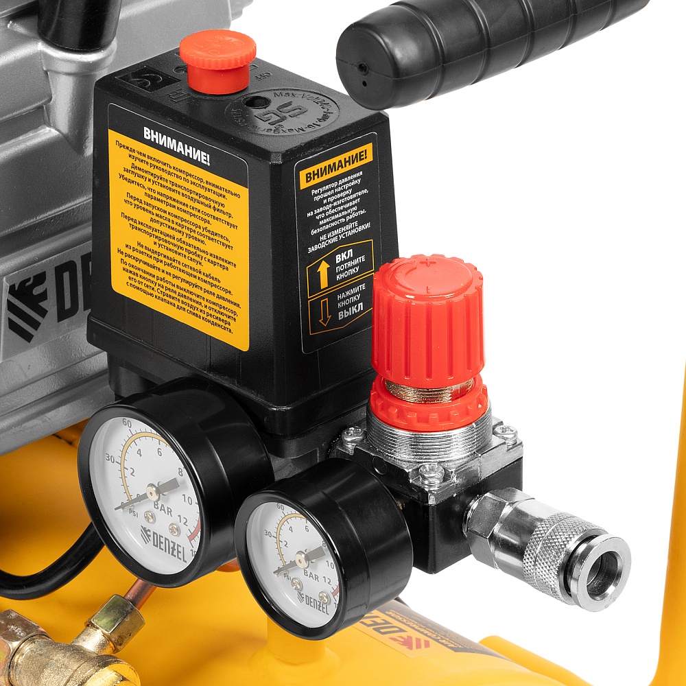 Компрессор воздушный DC1500/24, прямой привод, 1.5 кВт, 24 литра, 220 л/мин Denzel