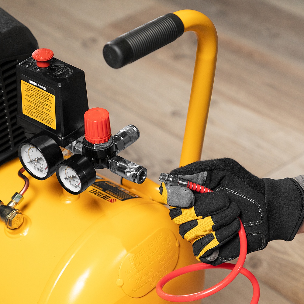 <p>Воздушный компрессор Denzel Х-PRO DK1500/50 58064 мощностью 1,5 кВт, производительностью 230 л/мин, имеет ресивер объемом 50 л и подходит для бытового использования. Обеспечивает подачу воздуха к различным пневматическим инструментам: шуруповерту, краскопульту и др. Будет незаменим в гараже, когда надо подкачать колеса автомобиля или подкрасить его отдельные детали, а также на даче или в частной мастерской. Несмотря на простоту конструкции, компрессор имеет хорошую производительность и возможность подключения сразу нескольких инструментов. </p><h2>Преимущества</h2><ul><li>Автозапуск — в ресивере поддерживается необходимый уровень давления для корректной работы пневмоинструментов.</li><li>Контроль рабочих параметров — два манометра отображают давление в ресивере и выходной магистрали.</li><li>Защита от перегрева — в случае превышения допустимой температуры двигатель отключается.</li><li>Защита по току — при перегрузке двигатель останавливается для предотвращения поломки.</li><li>Безопасность — предохранительный клапан сбрасывает избыточное давление в случае необходимости.</li><li>Простая подготовка к работе — быстросъемные коннекторы рапид (Евро) значительно облегчают процесс подключения пневмоинструмента к компрессору.</li><li>Устойчивость к разрушению — стенки ресивера имеют увеличенную толщину (2,5 мм), сварные швы отличаются высокой прочностью.</li><li>Ремонтопригодность — раздельное крепление цилиндра к картеру и головки к цилиндру облегчает замену вышедших из строя элементов.</li><li>Надежная система фильтрации — воздушный фильтр с металлическим корпусом и качественным картриджем из гофробумаги рассчитан на долгий срок службы.</li><li>Быстрое удаление влаги — сливная пробка со специальными ушками легко откручивается и закручивается, что упрощает слив конденсата после окончания работы.</li><li>Мобильность — транспортировочные колеса позволяют легко перемещать компрессор по рабочей площадке.</li><li>Виброзащита — резиновая опора гасит вибрации, поэтому работа компрессора не вызывает дискомфорт.</li><li>Гарантия 3 года — надежность компрессора подтверждена производителем.</li></ul>