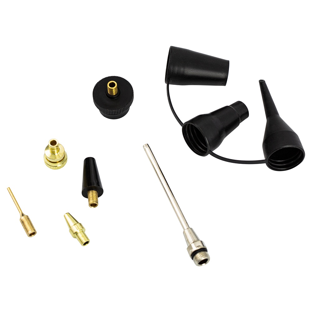 Компрессор - 1 шт, Набор адаптеров - 1 шт, Пневмопистолет с манометром - 1 шт, Набор насадок - 8 шт, Инструкция по эусплуатации - 1 шт, Гарантийный талон - 1 шт