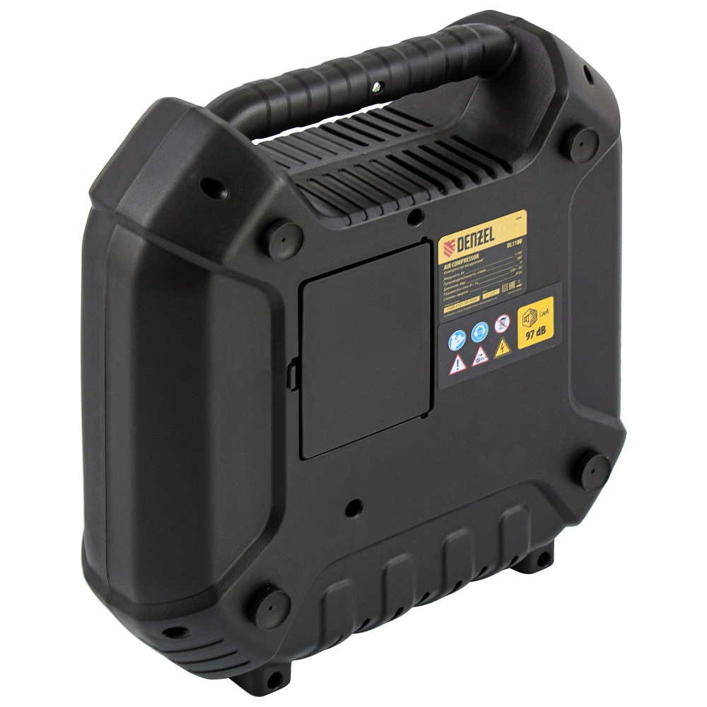 Воздушный безмасляный компрессор Denzel DL1100 58005 мощностью 1,1 кВт и производительностью 180 л/мин предназначен для подключения пневмопистолетов, продувочного инструмента и другого оборудования, исключающего контакт с маслом. Высокой производительности хватит, чтобы подкачать шины, продуть технику, провести частичную подкраску и обеспечить выполнение других технических работ.Компрессор выполнен в виде моноблока, что очень удобно для его хранения, переноски и размещения на рабочей площадке. Отсутствие ресивера и безмасляная технология позволяют получать чистый воздух без примесей влаги и масляных паров. Также отпадает необходимость проверять давление в ресивере и удалять конденсат после рабочего цикла.ПреимуществаКомпактность — в компрессоре предусмотрены отсеки для кабеля питания, аксессуаров и пневмопистолета со шлангом, что позволяет хранить комплектующие в одном месте.Безопасное включение — кнопка пуска закрыта пластиковым кожухом, препятствующим попаданию влаги.Наличие манометра — контролировать давление сжатого воздуха можно по измерительному прибору, расположенному на корпусе пневмопистолета.Термозащита — электродвигатель моментально отключается при превышении допустимой температуры, это позволяет избежать поломок и продлить средний срок службы устройства до 5 лет.Предохранительный клапан — при возникновении избыточного давления происходит автоматическое стравливание газа, что предотвращает возникновение аварийной ситуации.Продуманность до мелочей — прорезиненные опоры гасят вибрации и повышают комфорт работы.Легкость перемещения — ребристая транспортировочная ручка делает транспортировку кейса простой и удобной.Полная комплектация — к компрессору прилагается набор переходников и насадок, универсальный пневмопистолет, быстросъемное соединение со сменными соплами для накачивания шин и продувки воздухом.Гарантия 3 года — высокое качество компрессора подтверждено производителем.