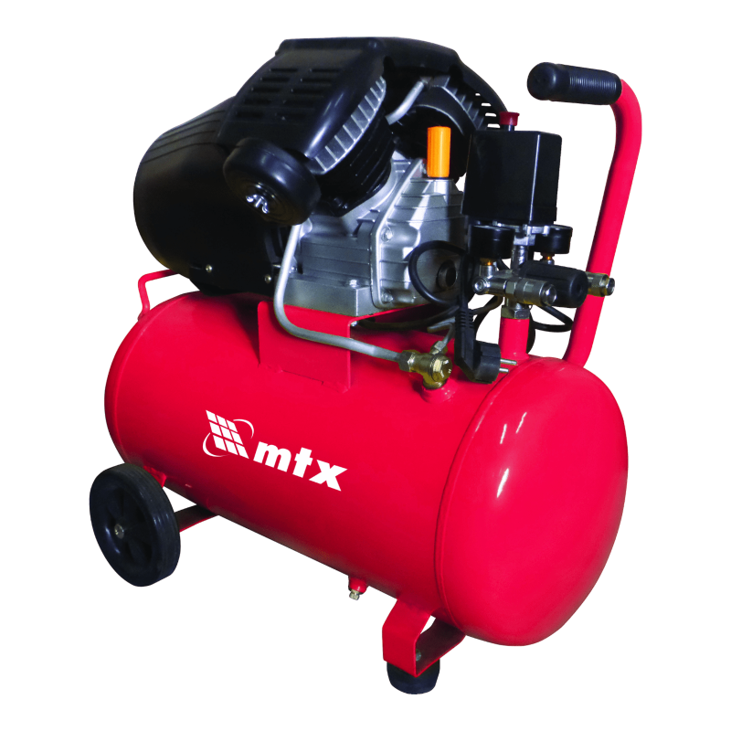 Компрессор воздушный масляный MTX KK-2200/50 58024 мощностью 2,2 кВт, с прямым приводом, оснащен ресивером объемом 50 л, обеспечивает производительность на уровне 350 л/мин и рассчитан на давление до 8 бар. Предназначен для обеспечения работоспособности пневматического инструмента: гайковерта, шлифовальной машины, шуруповерта, краскораспылителя или т.д. Мощный и производительный компрессор будет полезен на строительной площадке, в гараже, на предприятии автосервиса.ПреимуществаНадежность — двигатель с V-образным расположением цилиндров стабильно работает на протяжении всего срока эксплуатации.Долговечность — чугунные цилиндры медленно нагреваются, обеспечивая износостойкость компрессорной части.Безопасность пользователя — двигатель и верхняя часть цилиндров закрыты прочным защитным кожухом.Автономная работа — прессостат обеспечивает автоматическую остановку двигателя по достижении максимального рабочего давления и запуск при падении давления до минимального уровня.Защита по току — при перегрузке двигатель останавливается для предотвращения поломки.Термозащита — в случае перегрева электропитание автоматически отключается, что позволяет избежать оплавления обмотки.Автоматический сброс избыточного давления — предохранительный клапан исключает возникновение аварийных ситуаций.Удобный контроль рабочих параметров — 2 манометра и регулятор позволяют отслеживать и корректировать давление для корректной работы пневмоинструмента.Чистый воздух — воздушные фильтры препятствуют попаданию посторонних частиц в цилиндры, защищая компрессор от поломки.Легкое подключение инструмента — 2 быстросъемных коннектора Рапид (Евро) упрощают подготовку к работе.Комфортная эксплуатация — резиновые опоры снижают уровень вибраций, возникающих во время работы.Мобильность — благодаря колесам и рукоятке компрессор удобно разворачивать и перемещать по рабочей площадке.