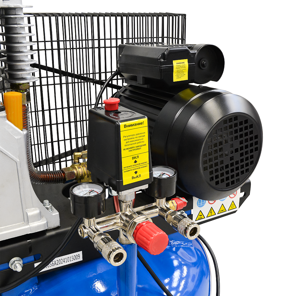 Компрессорная головка с 2 цилиндрами, установленная на 100-л ресивере;