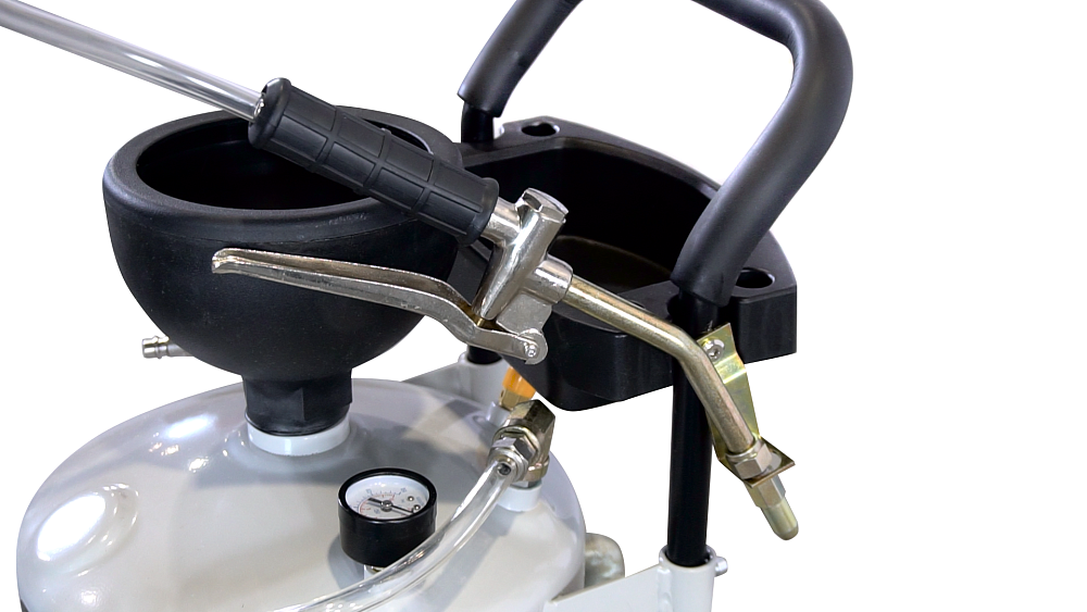 Нагнетатель масла с пневматическим приводом KRW1910N представляет из себя ёмкость на колесах, объёмом 30 литров с механическим пистолетом для раздачи масла, работающую от сжатого воздуха.