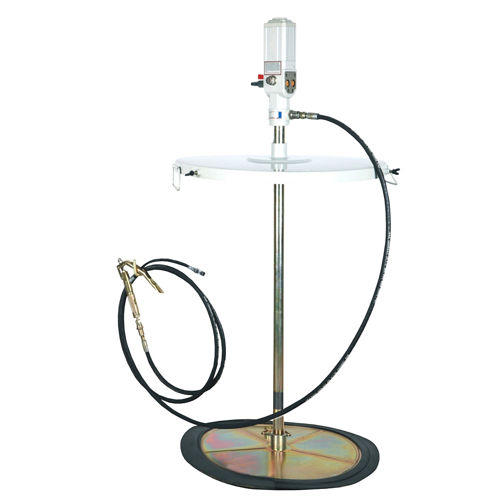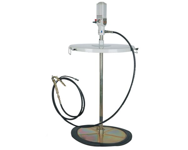 Нагнетатель густой смазки K77220 AE&T пневматический предназначен для подачи консистентной смазки (солидола) из стандартной бочки 180-220 кг в смазываемые узлы под давлением до 350 бар.