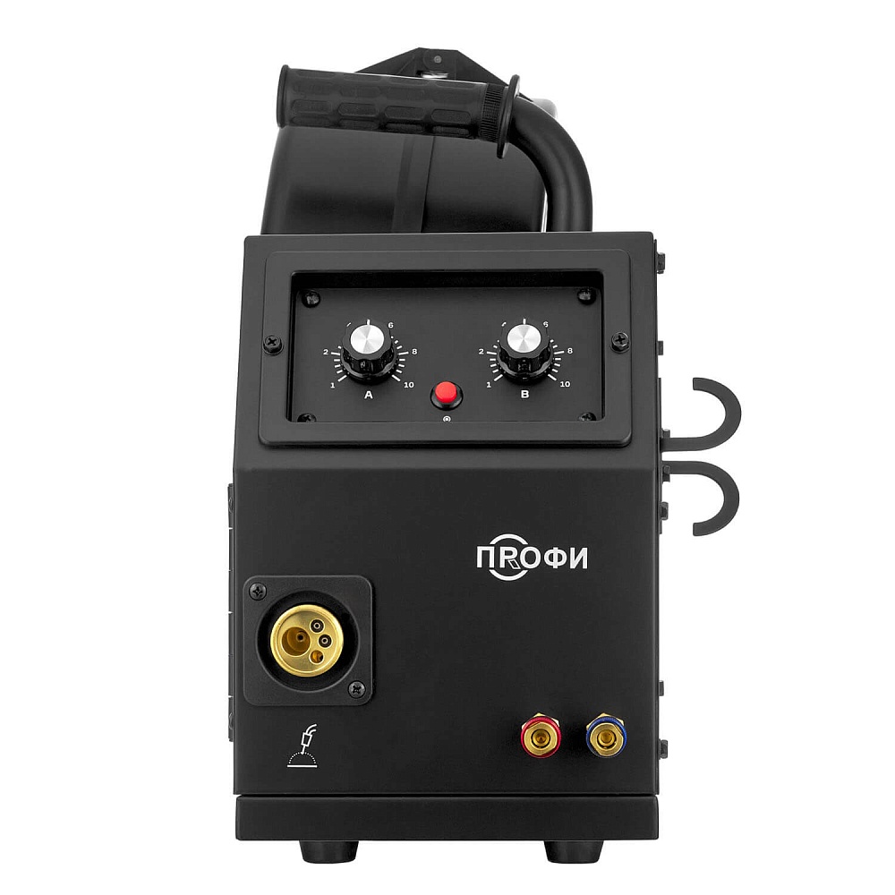 - Наличие кнопки протяжки проволоки, регуляторов скорости подачи проволоки и напряжения на дуге.