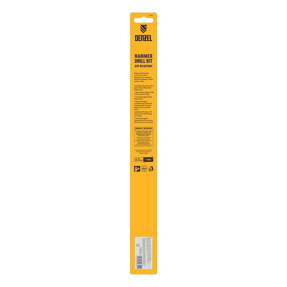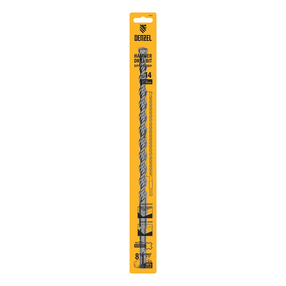 <p>Бур по бетону Denzel Cobalt W-tip 705033 размером 14 х 310 мм, с хвостовиком SDS-plus и двойной спиралью, предназначен для сверления бетона, кирпича и камня. Используется в качестве оснастки для перфораторов с патроном SDS-plus. Бур оптимален для проведения строительных, ремонтных, монтажных работ.</p><h2>Преимущества</h2><ul><li>Высокий ресурс — режущая твердосплавная пластина из сплава ВК8 твердостью 80-90 HRC с W-образной заточкой позволяет увеличить скорость работы на 30%, в том числе при сверлении камня.</li><li>Прочность и износостойкость — рабочая часть из легированной стали 40Х выдерживает интенсивные и длительные ударные нагрузки, что делает бур самым высокопроизводительным среди аналогов средней цены.</li><li>Эффективный отвод шлама — двойная спираль и канавка с дополнительным желобом обеспечивают быстрое удаление пыли, что предотвращает перегрев рабочей части и продлевает срок службы бура.</li><li>Высокая технологичность — бур изготовлен в соответствии с Европейским стандартом, что гарантирует его качество и эффективность сверления.</li><li>Удобное хранение — оснастка поставляется в упаковке с европодвесом.</li></ul>
