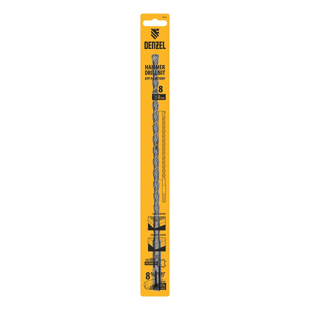 <p>Бур по бетону Denzel Cobalt W-tip 705014 размером 8 х 260 мм, с хвостовиком SDS-plus и двойной спиралью, предназначен для сверления бетона, кирпича и камня. Используется в качестве оснастки для перфораторов с патроном SDS-plus. Бур оптимален для проведения строительных, ремонтных, монтажных работ.</p><h2>Преимущества</h2><ul><li>Высокий ресурс — режущая твердосплавная пластина из сплава ВК8 твердостью 80-90 HRC с W-образной заточкой позволяет увеличить скорость работы на 30%, в том числе при сверлении камня.</li><li>Прочность и износостойкость — рабочая часть из легированной стали 40Х выдерживает интенсивные и длительные ударные нагрузки, что делает бур самым высокопроизводительным среди аналогов средней цены.</li><li>Эффективный отвод шлама — двойная спираль и канавка с дополнительным желобом обеспечивают быстрое удаление пыли, что предотвращает перегрев рабочей части и продлевает срок службы бура.</li><li>Высокая технологичность — бур изготовлен в соответствии с Европейским стандартом, что гарантирует его качество и эффективность сверления.</li><li>Удобное хранение — оснастка поставляется в упаковке с европодвесом.</li></ul>