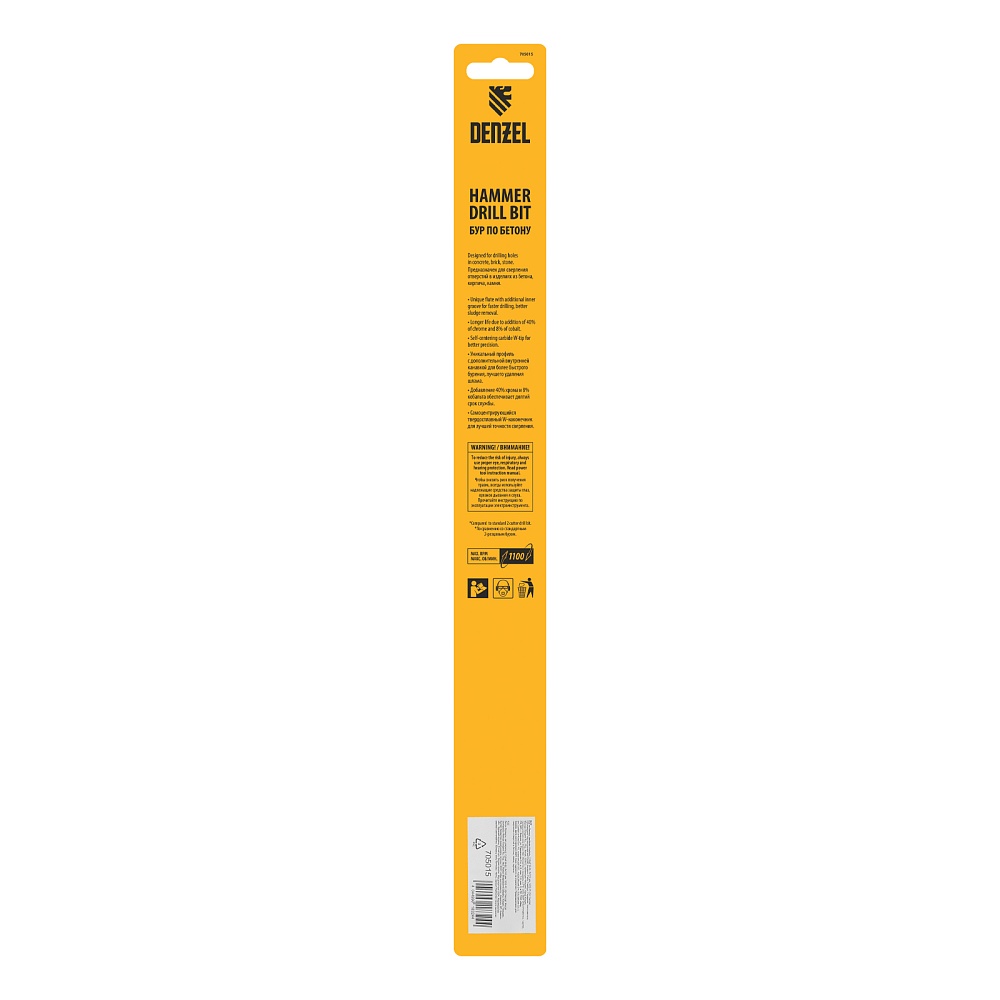 <p>Бур по бетону Denzel Cobalt W-tip 705015 размером 8 х 310 мм, с хвостовиком SDS-plus и двойной спиралью, предназначен для сверления бетона, кирпича и камня. Используется в качестве оснастки для перфораторов с патроном SDS-plus. Бур оптимален для проведения строительных, ремонтных, монтажных работ.</p><h2>Преимущества</h2><ul><li>Высокий ресурс — режущая твердосплавная пластина из сплава ВК8 твердостью 80-90 HRC с W-образной заточкой позволяет увеличить скорость работы на 30%, в том числе при сверлении камня.</li><li>Прочность и износостойкость — рабочая часть из легированной стали 40Х выдерживает интенсивные и длительные ударные нагрузки, что делает бур самым высокопроизводительным среди аналогов средней цены.</li><li>Эффективный отвод шлама — двойная спираль и канавка с дополнительным желобом обеспечивают быстрое удаление пыли, что предотвращает перегрев рабочей части и продлевает срок службы бура.</li><li>Высокая технологичность — бур изготовлен в соответствии с Европейским стандартом, что гарантирует его качество и эффективность сверления.</li><li>Удобное хранение — оснастка поставляется в упаковке с европодвесом.</li></ul>