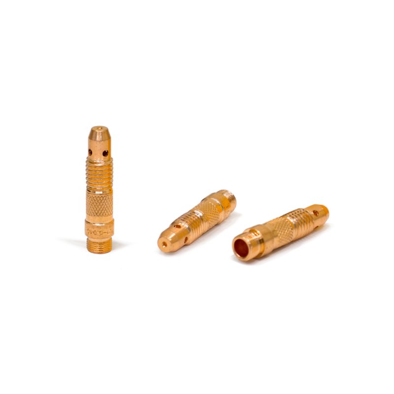 Держатель цанги – устройство для крепления цанги в сопле аргонодуговой горелки. С помощью отверстий в цангодержателе защитный газ во время TIG сварки подаётся к сварочной ванне и защищает её от вредного воздействия кислорода.