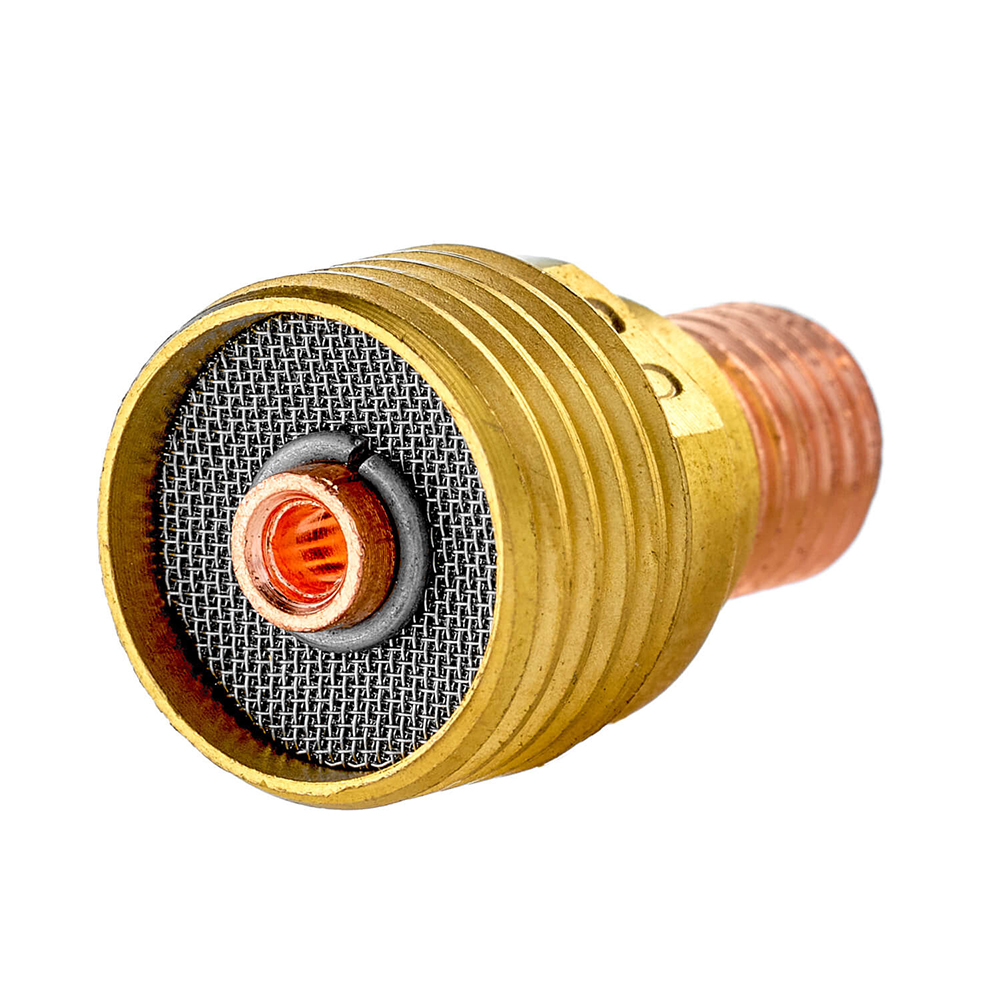 Держатель цанги для газовой линзы диаметром 1,0 мм фиксирует цангу в аргонодуговой горелке TIG. Совместим с горелками серии TP 9/20/25. Совместим только с керамическими соплами для газовых линз.