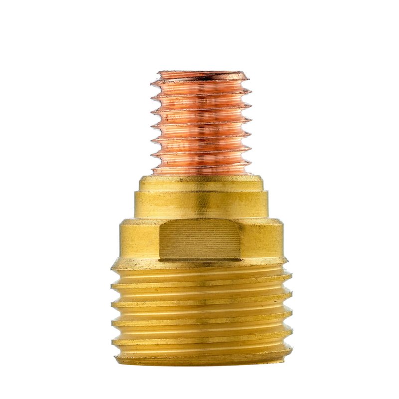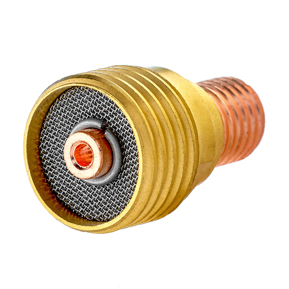 Держатель цанги для газовой линзы диаметром 1,6 мм фиксирует цангу в аргонодуговой горелке TIG. Совместим с горелками серии TP 9/20/25. Совместим только с керамическими соплами для газовых линз. Подходит для наборов COLISEUM для работы с вольфрамовыми электродами диаметром 1,6 мм.