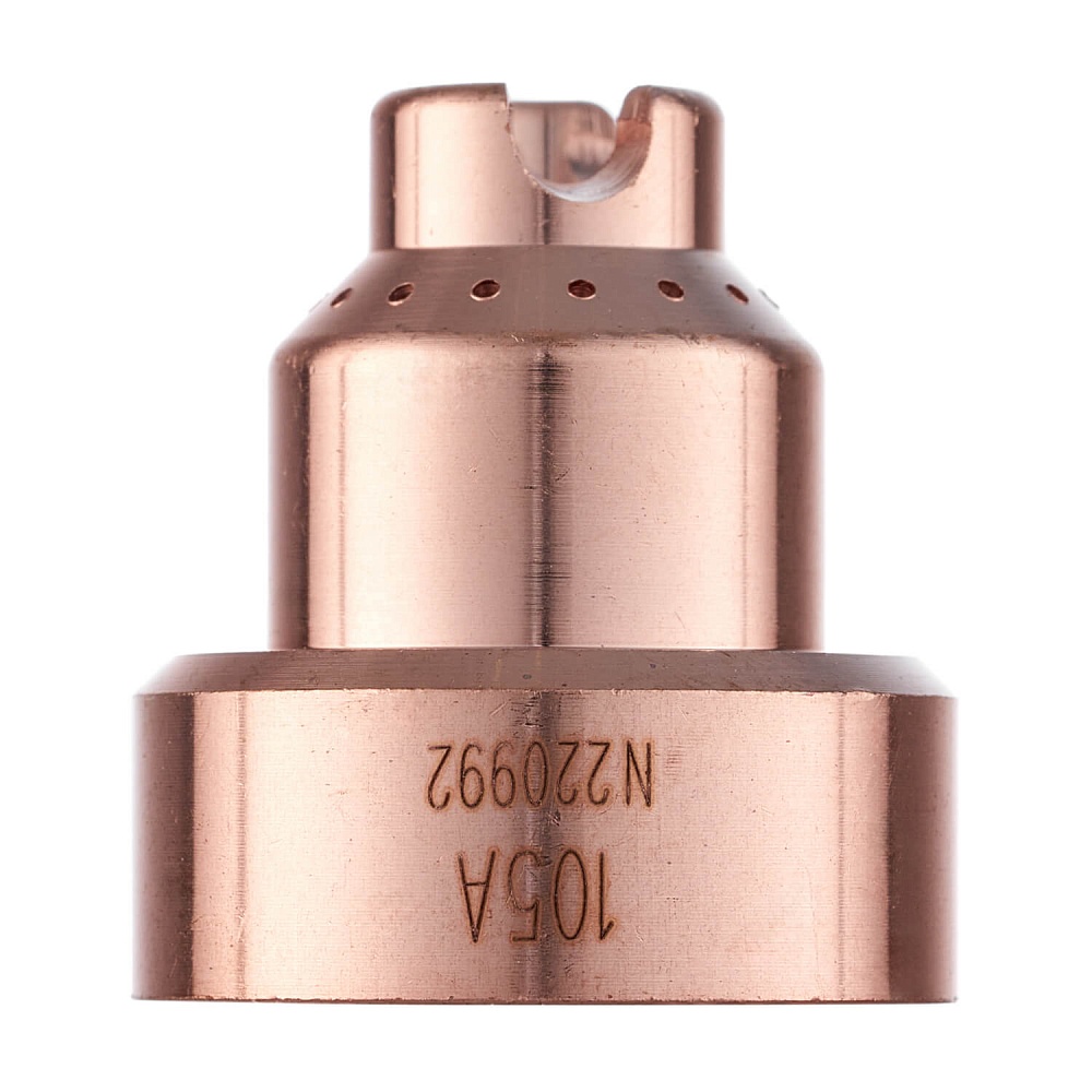 Экран защитный PMX 105 – расходная часть, которая устанавливается на кожух и служит защитой для сопла, катода и передней части кожуха. Защитный экран PMX формирует поток выдуваемого из сопла воздуха. Изделие рассчитано на максимальный ток реза до 105 Ампер.