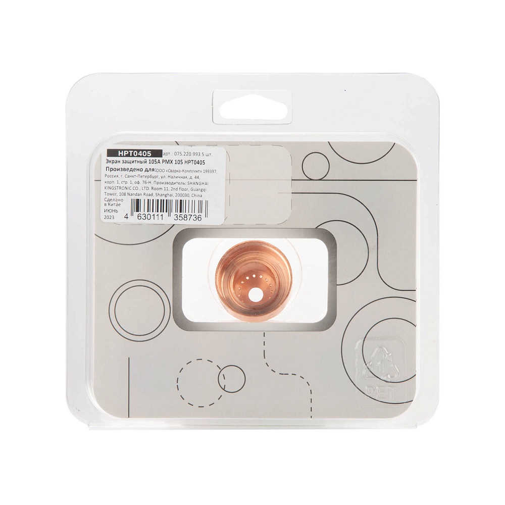 Экран защитный PMX 105 – расходная часть, которая устанавливается на кожух и служит защитой для сопла, катода и передней части кожуха. Защитный экран PMX формирует поток выдуваемого из сопла воздуха. Изделие рассчитано на максимальный ток реза до 105 Ампер.