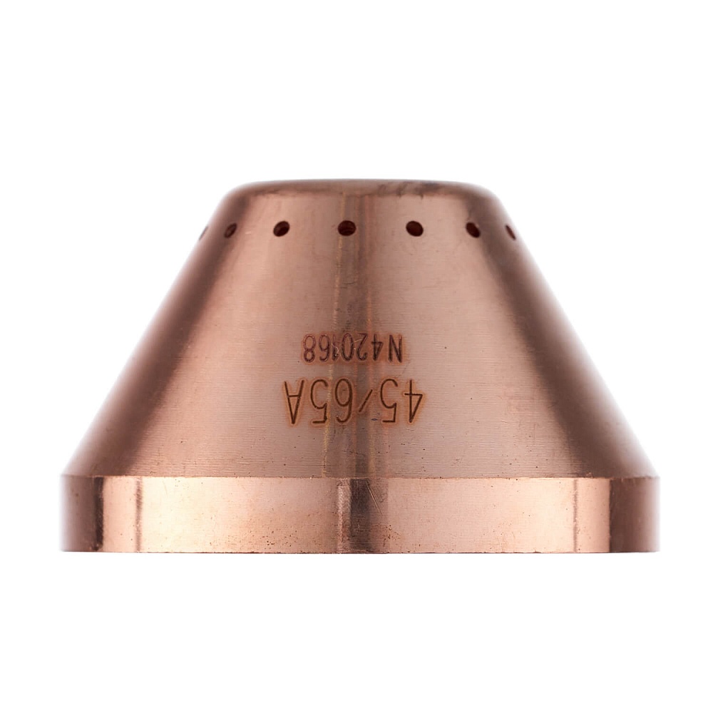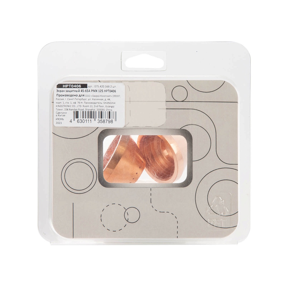 Экран защитный PMX 125 – расходная часть, которая устанавливается на кожух и служит защитой для сопла, катода и передней части кожуха. Защитный экран PMX формирует поток выдуваемого из сопла воздуха. Изделие рассчитано на максимальный ток реза до 65 Ампер.