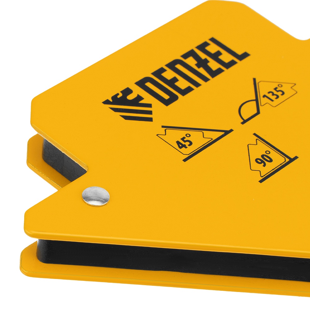 <p>Магнитный фиксатор Denzel 25 LB 97551 значительно упрощает проведение сварочных и паяльных работ с металлическими профилями, уголками, трубами прямоугольной и круглой формы, пластинами и другим типом металла. Он позволяет быстро и легко зафиксировать конструкцию весом до 11 кг под необходимым углом и работать без риска ее падения или смещения.</p><h2>Преимущества</h2><ul><li>Высокая эффективность — инструмент упрощает сварочный процесс, не требует особых усилий в использовании и надежно держит выставленные детали под самыми востребованными углами: 45, 90 или 135 градусов.</li><li>Износостойкий корпус — при высоких нагрузках и в случае падения фиксатора его стенки не деформируются и обеспечивают точную сборку деталей.</li><li>Универсальный размер 119 х 89 х 14 мм — фиксатор подойдет для соединения как крупных, так и небольших деталей без привлечения дополнительных зажимов и струбцин.</li><li>Простое и быстрое обслуживание — по окончании работ достаточно смахнуть налет с инструмента щеткой.</li></ul>