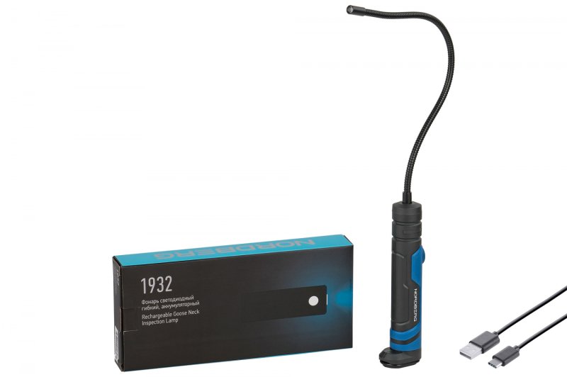 Светодиодный гибкий аккумуляторный фонарь NORDBERG 1932 – удобный компактный инструмент при проведении ремонта, обслуживания или осмотра необходимых деталей и механизмов автомобиля в автосервисах и СТО.