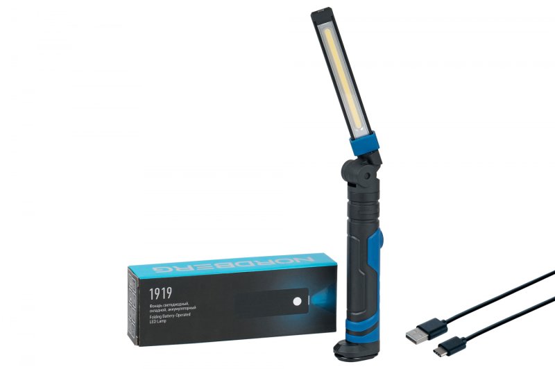 Складной светодиодный фонарь NORDBERG 1919 – удобный инструмент при проведении ремонтных работ в автосервисах и СТО.