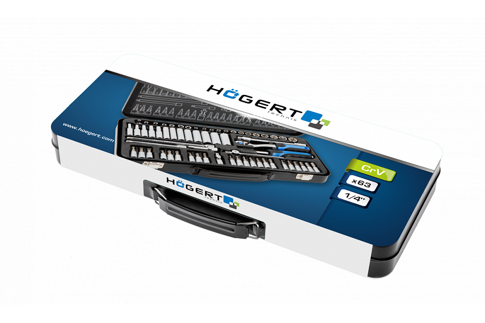 HOEGERT HT1R486 Набор инструментов, 63 шт., 1/4"