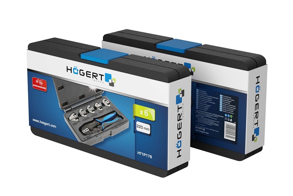 HOEGERT Пресс-клещи для обжима проводов со сменными матрицами, 6 шт.
