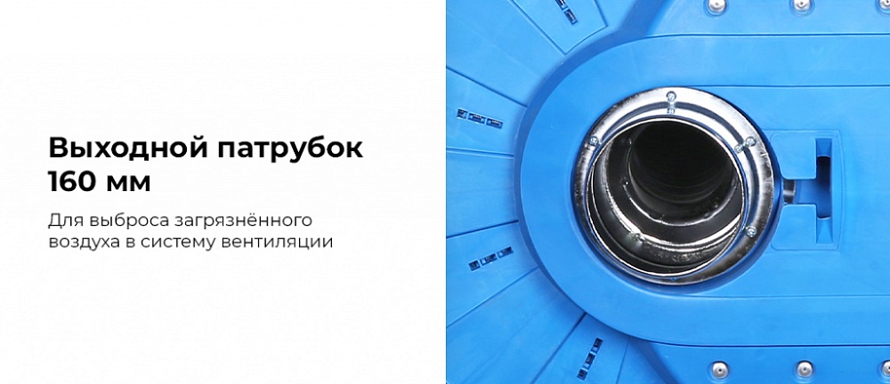 Высокая эффективность удаления выхлопных газов (расход воздуха — 800–1200 м?/ч);