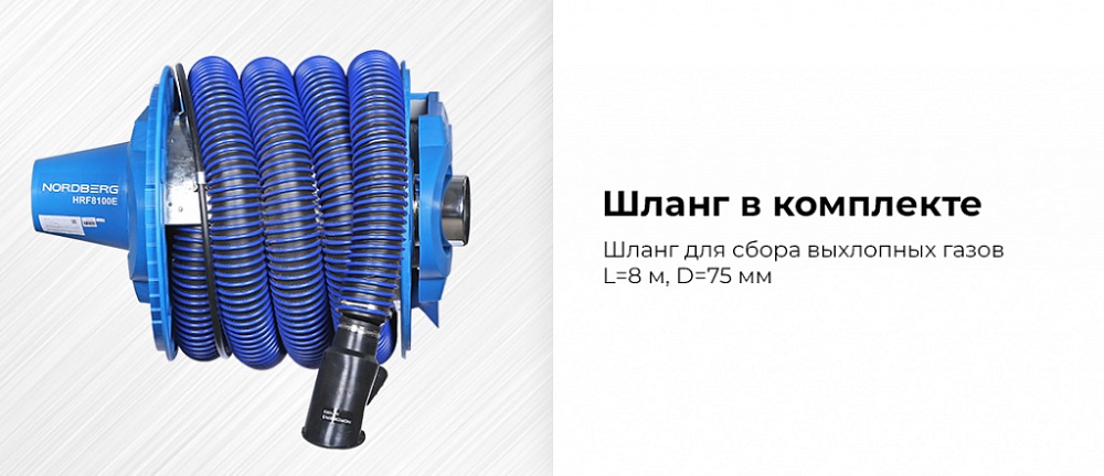 Катушка для сбора выхлопных газов с автоматическим приводом со шлангом D=100 и насадкой NORDBERG HRF8100E-KIT купить в СПб цена ✅ - Все для СТО