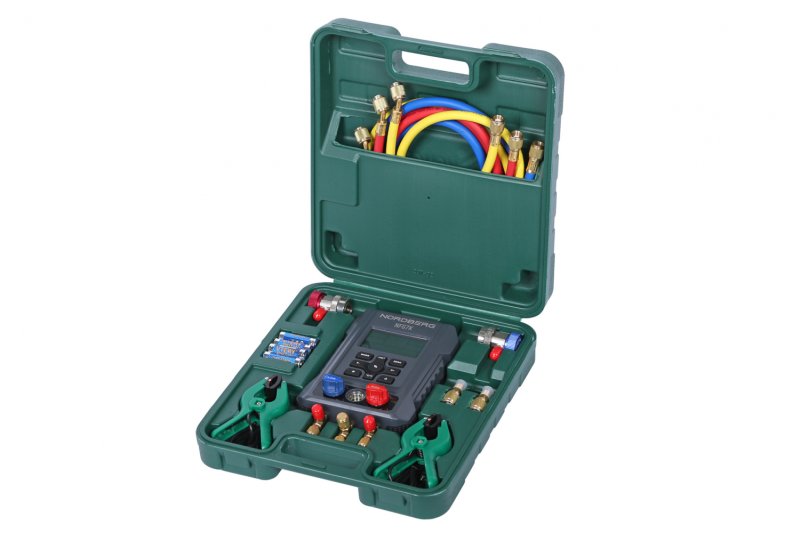 Электронный манометрический коллектор NORDBERG NFG7K позволит максимально точно и просто провести сервисное обслуживание автомобильных систем кондиционирования.