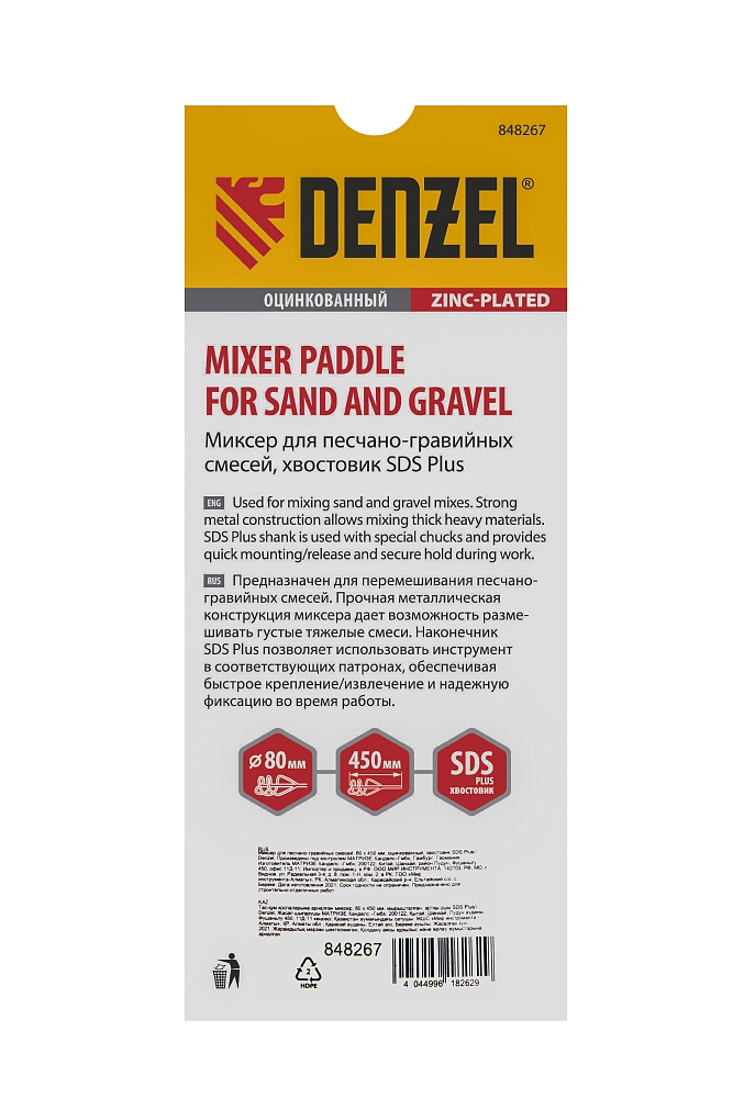Миксер для песчано-гравийных смесей, 80 х 450 мм, оцинкованный, хвостовик SDS Plus Denzel купить в СПб цена ✅ - Все для СТО