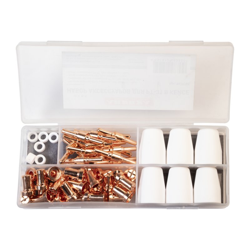 Набор аксессуаров Aurora для PT-31 в кейсе, 60шт - это комплект высококачественных расходников, необходимых для выполнения профессиональных работ по резке металла. Все элементы набора аккуратно размещены в пластиковом кейсе. Сам кейс имеет магнитный держатель. С его помощью набор можно легко зафиксировать на корпусе аппарата.
